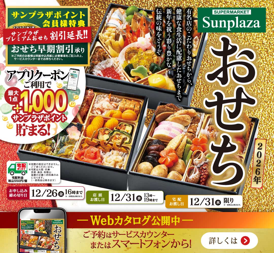 サンプラザのおせち ご予約は【12/26(金)16時まで(※)】!