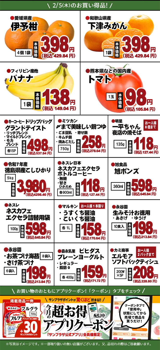 サンプラザ全店で実施!2/5(木)限定特別Webチラシ!