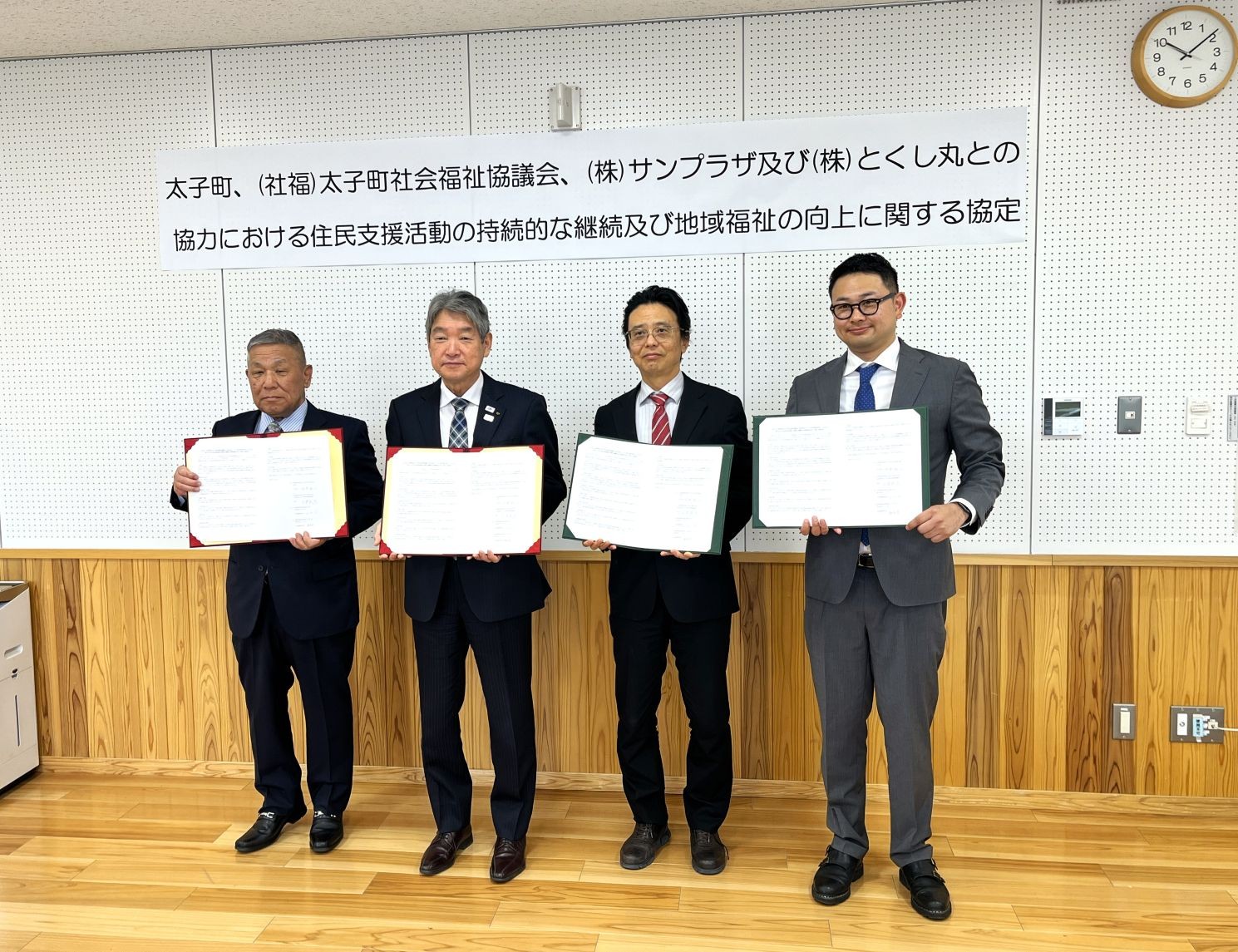 太子町と太子町社会福祉協議会、株式会社サンプラザ及び株式会社とくし丸の4者で、