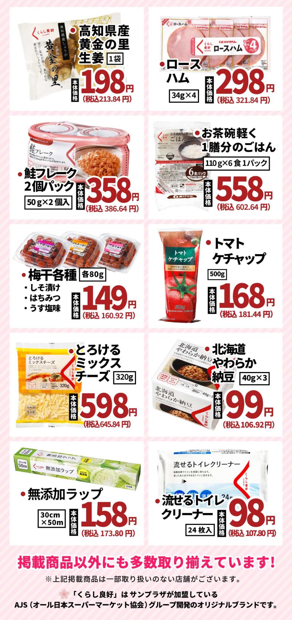 サンプラザ含むAJSグループ加盟店で「くらし良好」商品をお買い上げいただいた方から、
